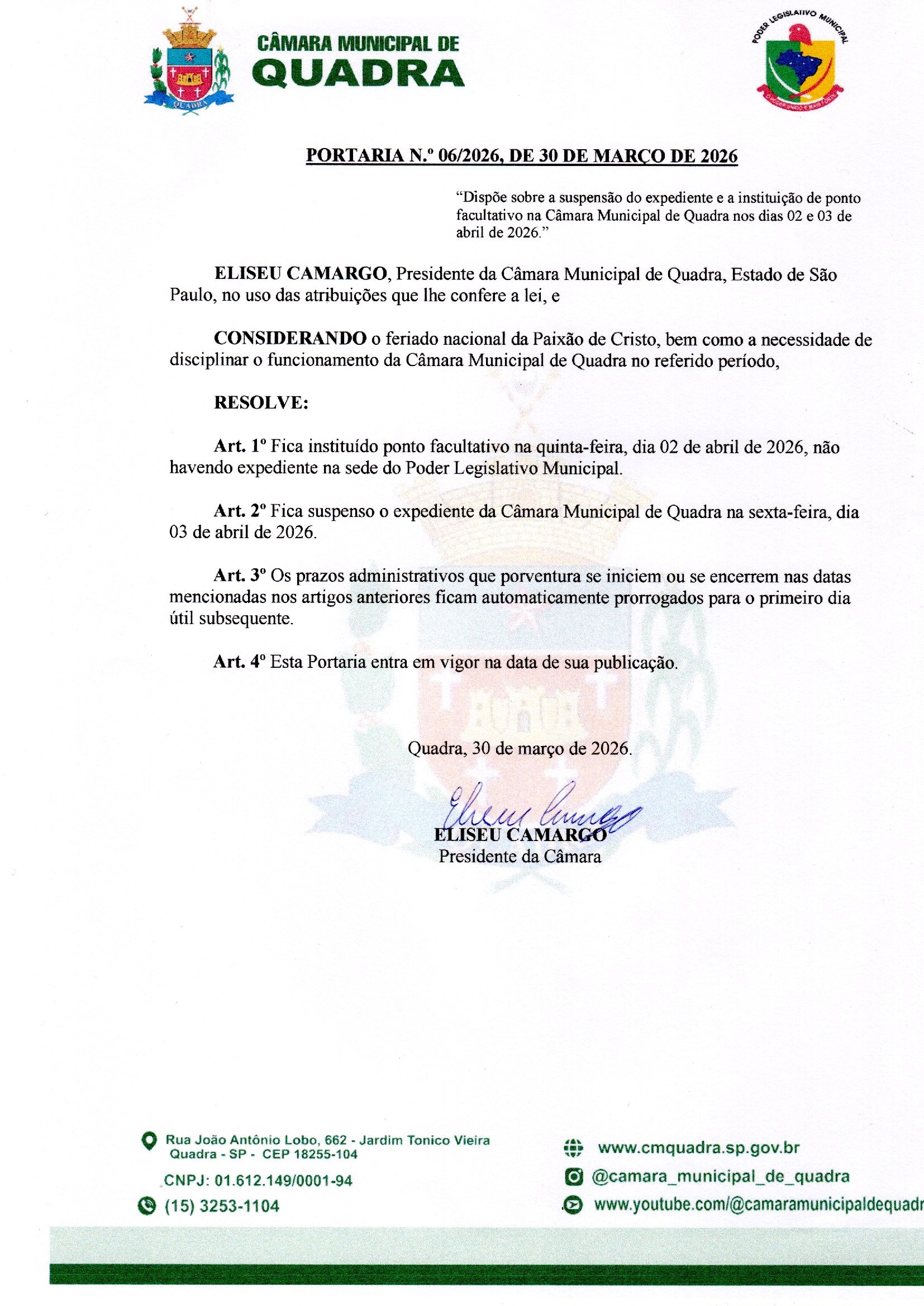 A Câmara Municipal de Quadra convida você para um momento especial de reconhecimento e celebração da nossa cidade.No próximo di...